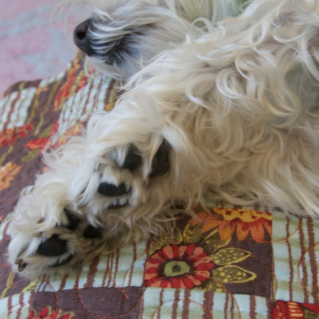 The best quilts I think I’ve made are machine washable and dryable. I’m happiest when I hear that a quilt I’ve made is so loved that it’s taken everywhere. If that involves dragging around, so be it. My quilts should be able to withstand a bit of dragging and wadding. Not dragged over hot coals mind you, but my quilts are meant to be used.