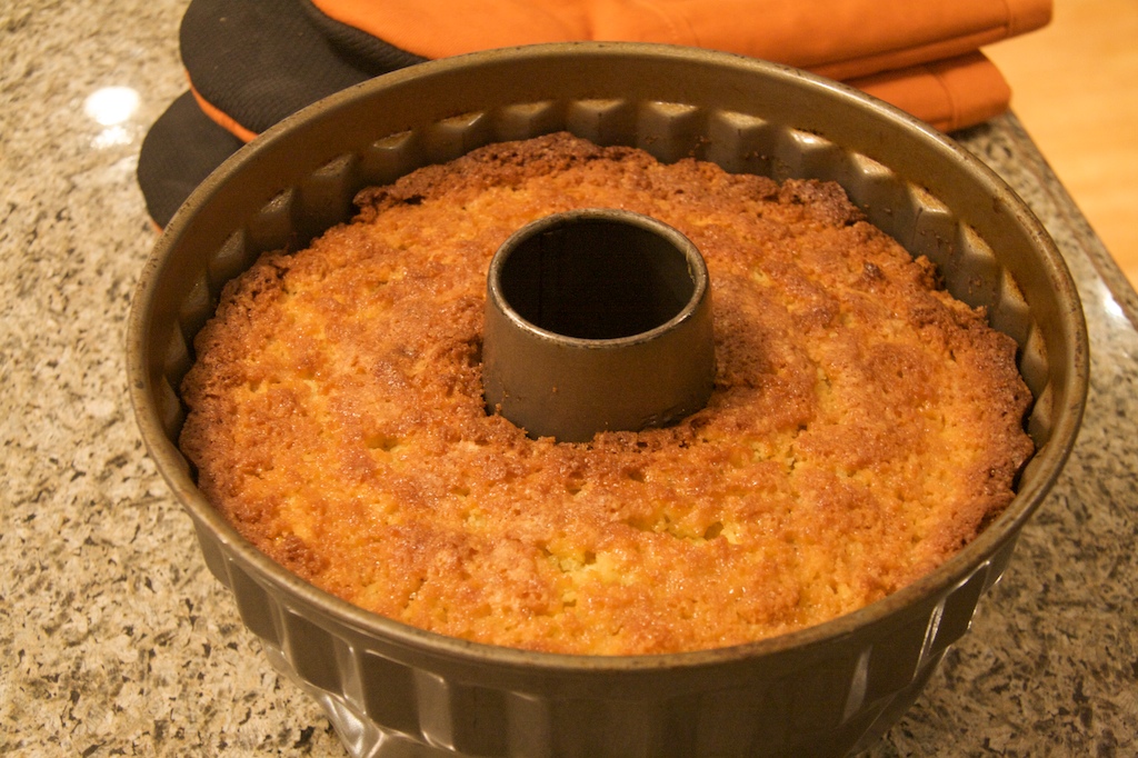 If bits are stuck to the top of the pan, curse, and then gently nudge the bits off and patch the cake together. No one will ever notice or care (That’s what my family tells me so that’s what I tell myself)