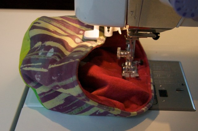 I’m assuming that anyone reading this and making one knows how to sew more than straight flat lines.   There’s a little math involved too if you’re interested.  If not, it’s possible to wing it.   Sewing this project involves connecting a straight thing to a round thing.  Sort of like sewing on a sleeve, but from my point of view, lower stress because there’s less fabric at risk, and no one waiting impatiently for a costume or prom dress.  That, and it’s not due tomorrow morning.