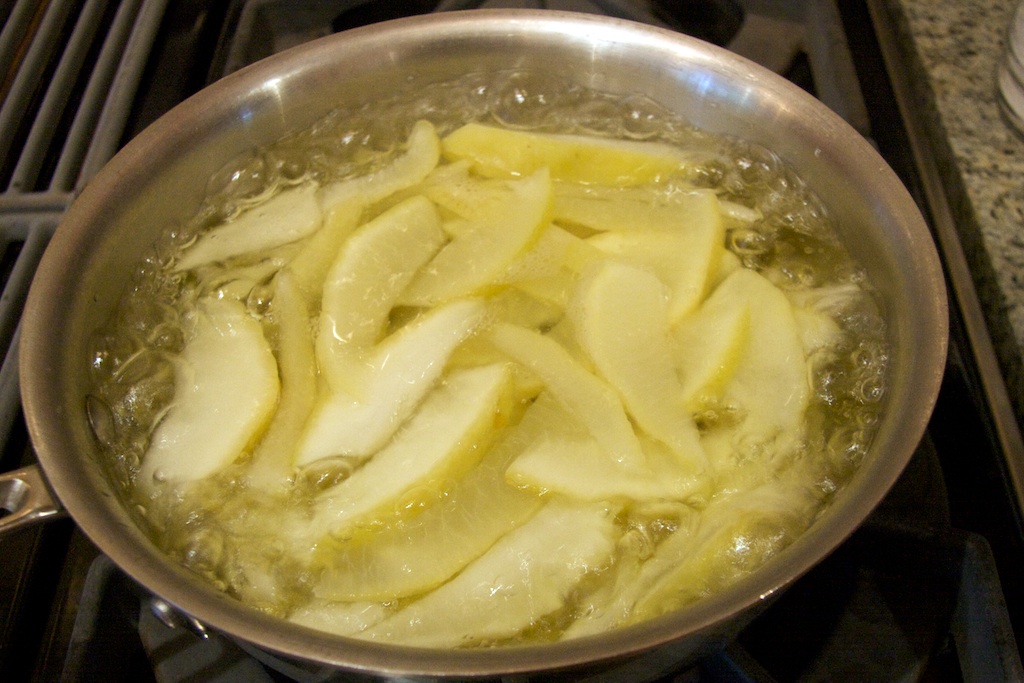 How were they, you ask?  They’re good.  They’re great if you like citrus with a bit of a bitter edge sort of like grapefruit.  I think they’ll be awesome diced and mixed into scones, or a fruit cake.