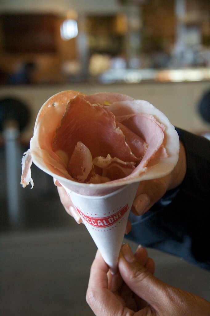 Then, we came to Boccalone, which advertises itself as a place that sells ‘tasty salted pig parts’. I personally think they need help with their marketing, but they seem to be doing okay despite that tag line. We shared a cone of meats. Tasty, though an odd form factor.Boccalone, Meat, Pig Parts