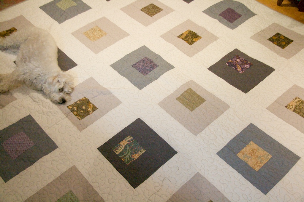 oh my!!!!! My heart nearly stopped when i saw your quilt!! I’m in the midst of completing a quilt I’m making for my friend and the concept of neutral on the William Morris fabric are EXTREMELY similar to yours!!! For a while i was thinking “what’s my quilt doing on google? and i don’t even have a dog!!”….hahaha…