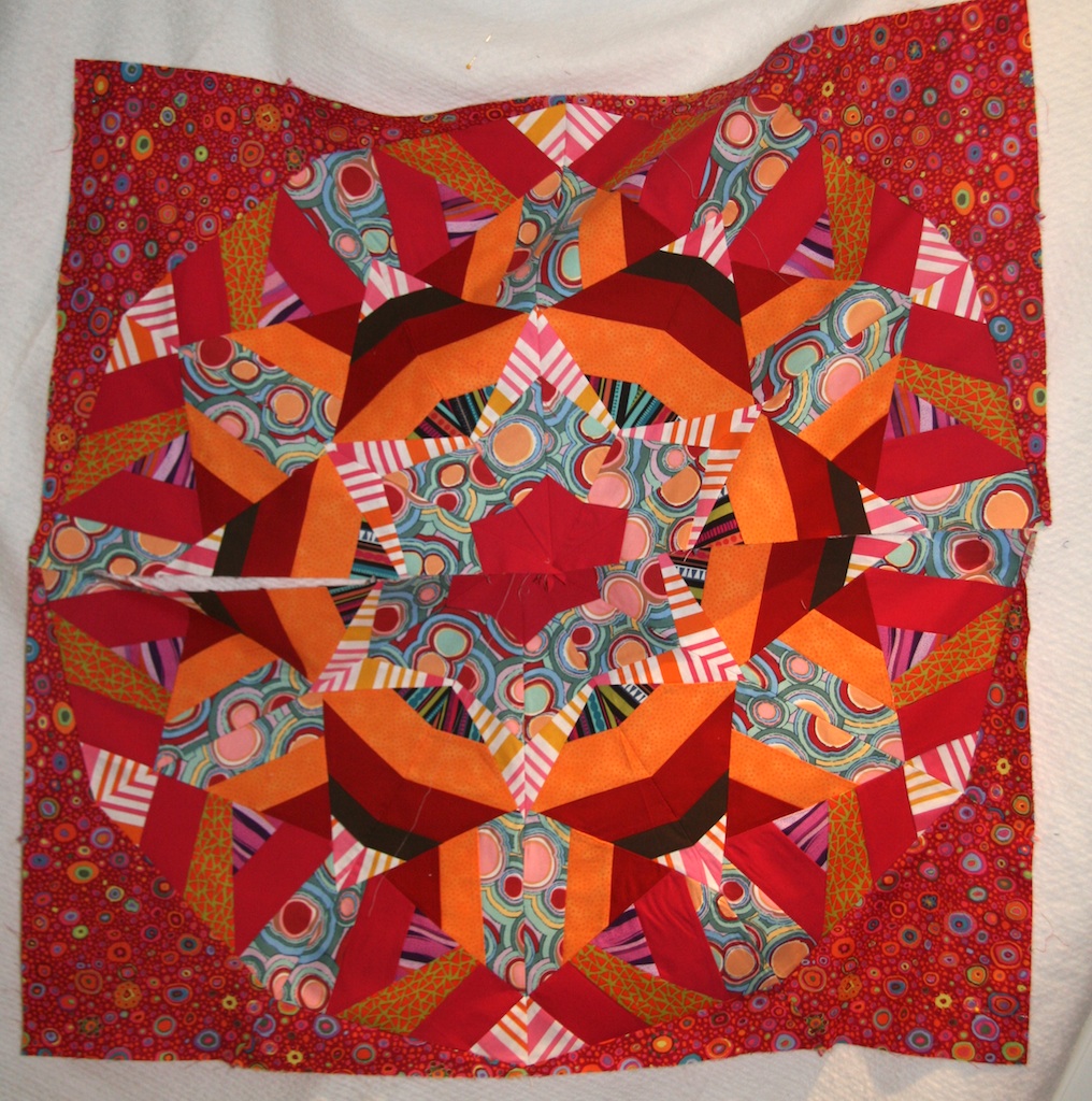 My plan was for it to become the center of a medallion quilt.  But now looking more at it, I might make 3 more of these and have them be four quadrants of different kaleidoscopes.  Maybe even different colors.   I’m not sure.  What do you think?