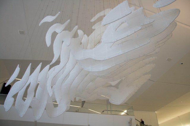 Since 9/11, the airport experience has gotten more stressful and time consuming. Artwork is a good distraction and there are good examples in T2. If you’re not rushing through, it’s worth a pause. Look up and and look around.