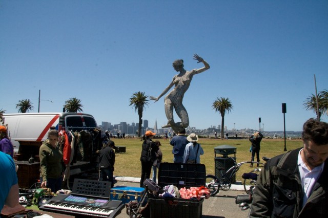 We went for our morning walk today at the first weekend of the Treasure Island Flea Market.  Treasure Island, if you’re not familiar, is an island in the middle of the San Francisco Bay between San Francisco and Oakland.  It was created in the 30’s from fill dredged from the bay, for the Golden Gate International Exposition.  It became a naval base after the World’s Fair and was a major Navy departure point for sailors leaving to the Pacific.  Treasure Island is now decommissioned and being used for other things…. Like a flea market with the most awesome views ever.