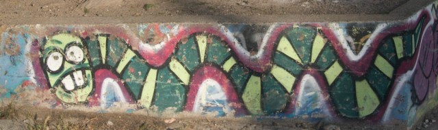 Graffiti covers the cement walls down to the beach. What is interesting here is that it is nowhere else. Cars are not tagged, nor are fences. There are rules, probably unwritten and unspoken, that spraying confines itself to along the two walls along the path to the beach.