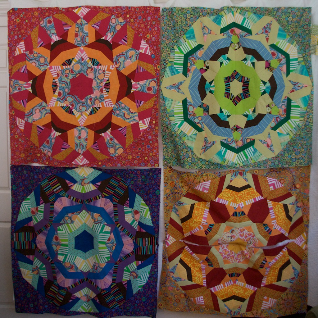 The multi-color Kaleidoscopes which started as a reaction to the monochromatic Kaleidoscope have been pieced.