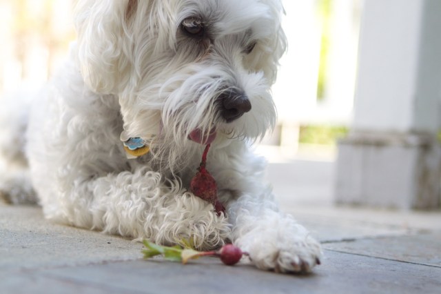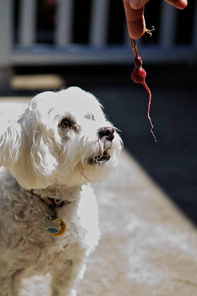 It turns out that Schnap – the Co-Quilter and Co-Gardener – enjoys radishes.