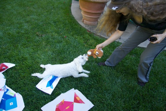 We try to entice Schnap off quilt pieces before photographing so that my loyal blog readers can see the work, but it’s tough. You see, the dog is a multi-tasker – and diligent and wily to boot. The Co-Quilter feels it is her duty to put herself on every quilt or quilt piece every time it is photographed. Sort of like the laying on of hands, only in her case, paws.