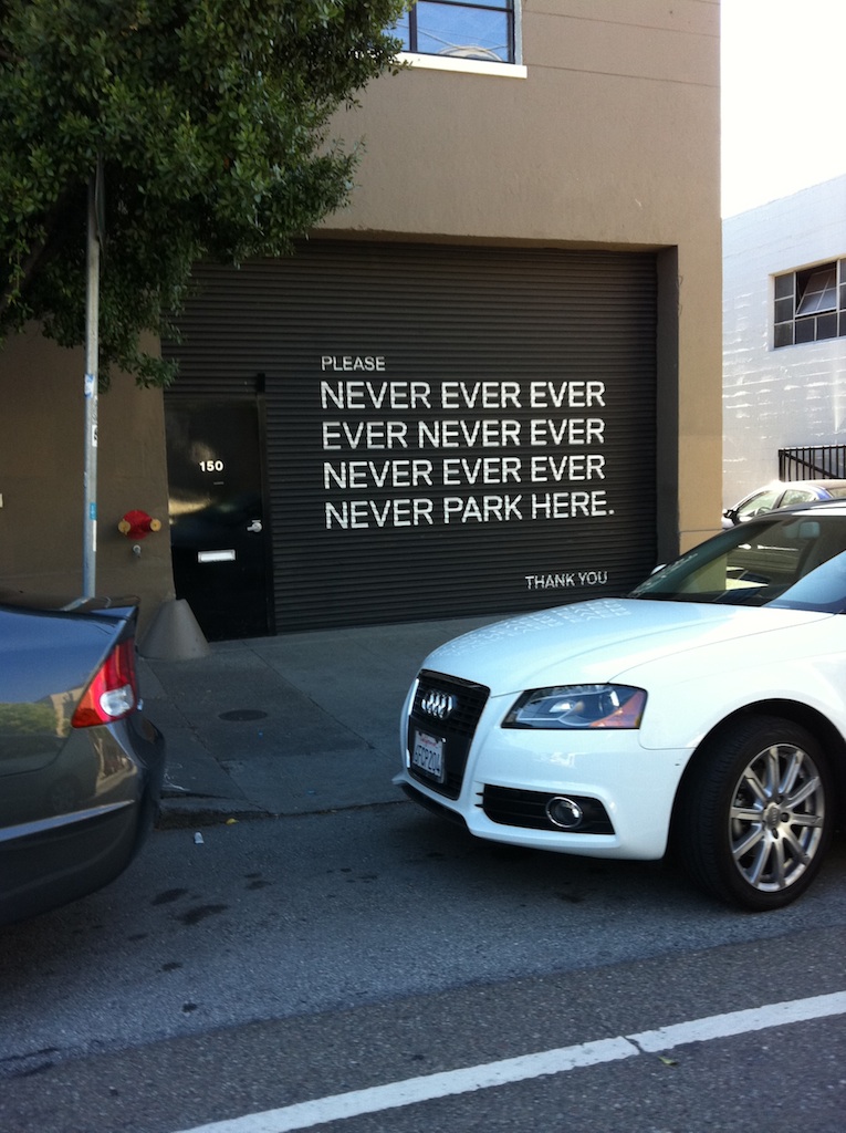 I agree! I was so surprised that there was a car parked in front of that garage (could the owner have been more clear?) that I had to go around the block again to take a picture of it.