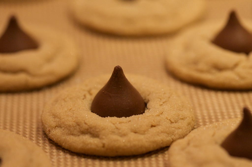 Take the cookie sheet out of the oven and gently push a Hershey’s Kiss or a Malted milk ball (depending) into the center of each cookie. Return the sheet to the oven for 2 minutes. Remove cookies to cool on a rack.