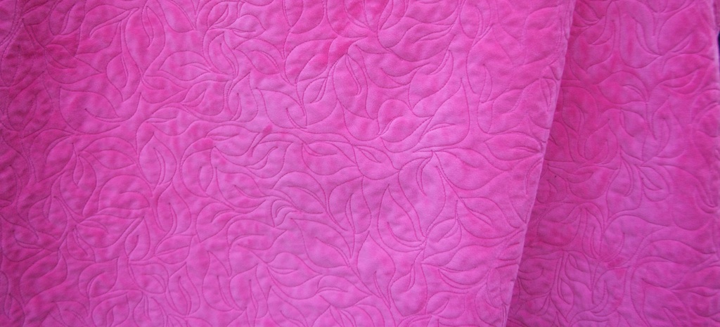 I quilt it on a long arm quilter. (I’m not sure how one would quilt it like this on a sewing machine – I don’t think I could, because the fabric stretches one way (across the width – which can be controlled with careful measuring and pinning to the rollers of a long arm) and no amount of diligent pinning without rollers would anchor this down right for either hand quilting or sewing machine quilting.
