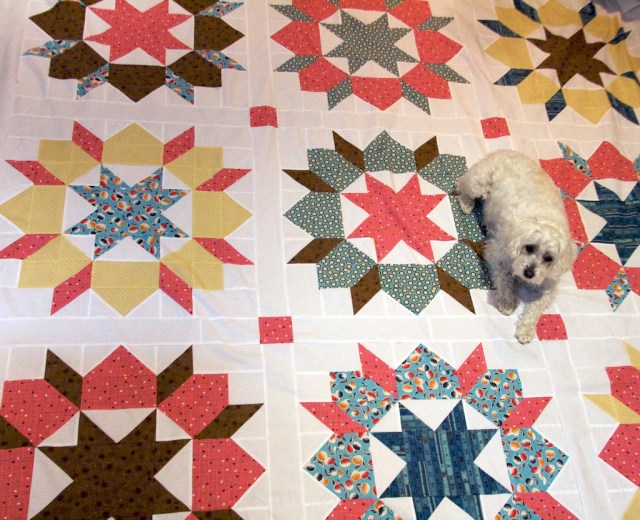 Having made 10 so far in a frenzy of sewing (Frenzies are a subset of Fit and Starts)  I’ve become much more efficient at making the 24″ blocks.