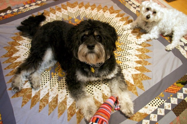 The dogs are lucky to have such a beautiful quilt! My dogs would just chew it 😦