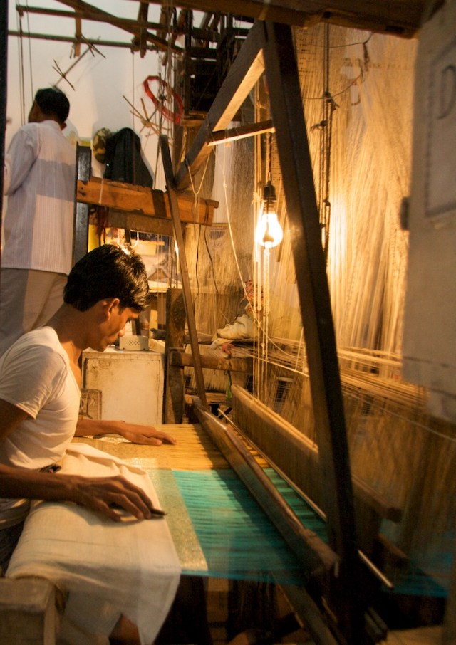 I think fabric creation and weaving is fascinating. We had a chance in Varanasi India, to see a craftsman manually weaving a jacquard piece of fabric.