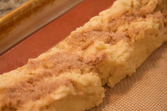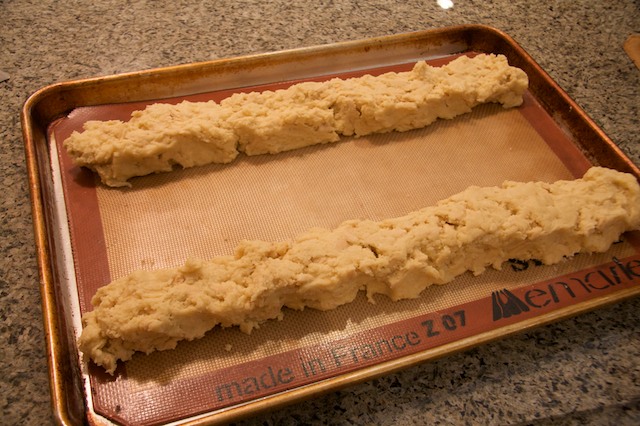Form the dough into loaves about 2” wide and 18” long and place on a Silpat or parchment lined cookie sheet.