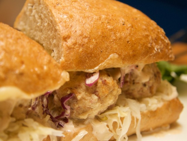 The Reuben Chicken Meatball, Housemade Falafel, and the Rosemary and Brown Sugar crusted BLT. My personal favorite was the Reuben Chicken Meatball on Salted Rye. (Salted rye? Genius! )